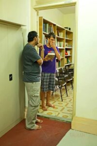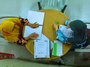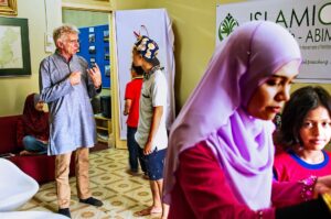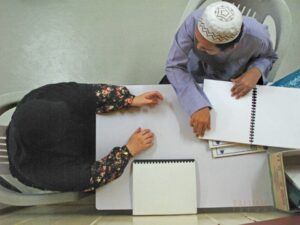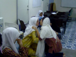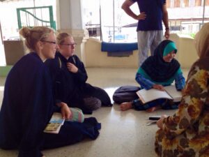 anne and hanne from germany listening to the blind reciting the quran