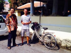 visitor from Hungary bicycling all the way from Bangkok