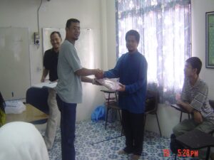 Dr Ku Azam receiving a book on sign language from the Penang Deaf Association